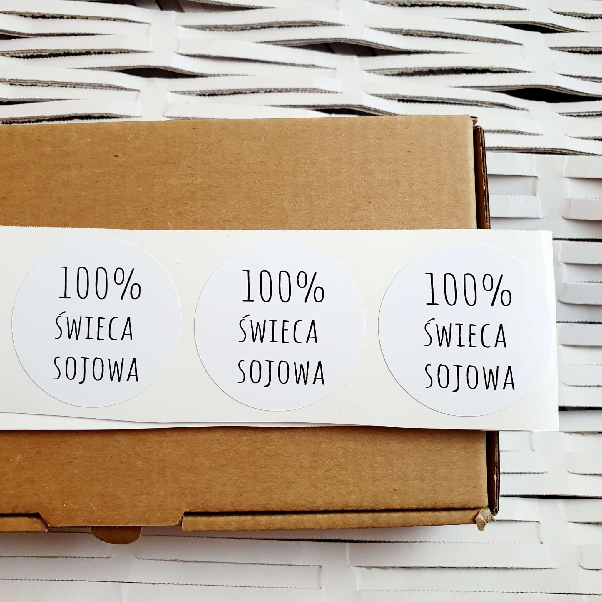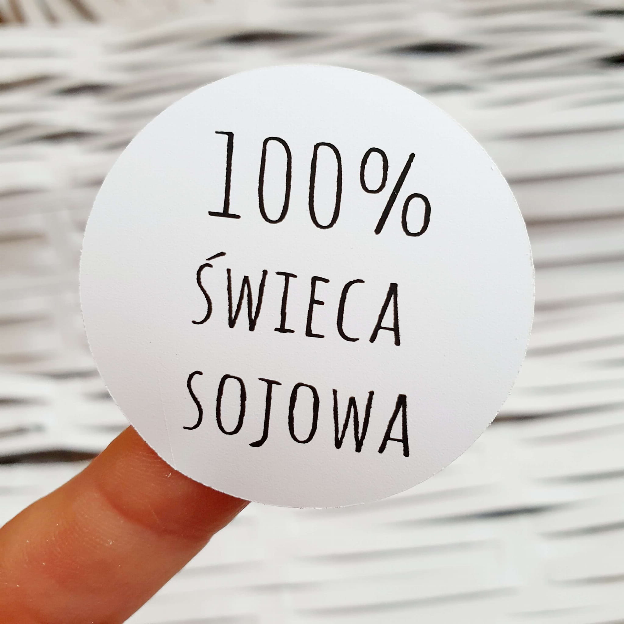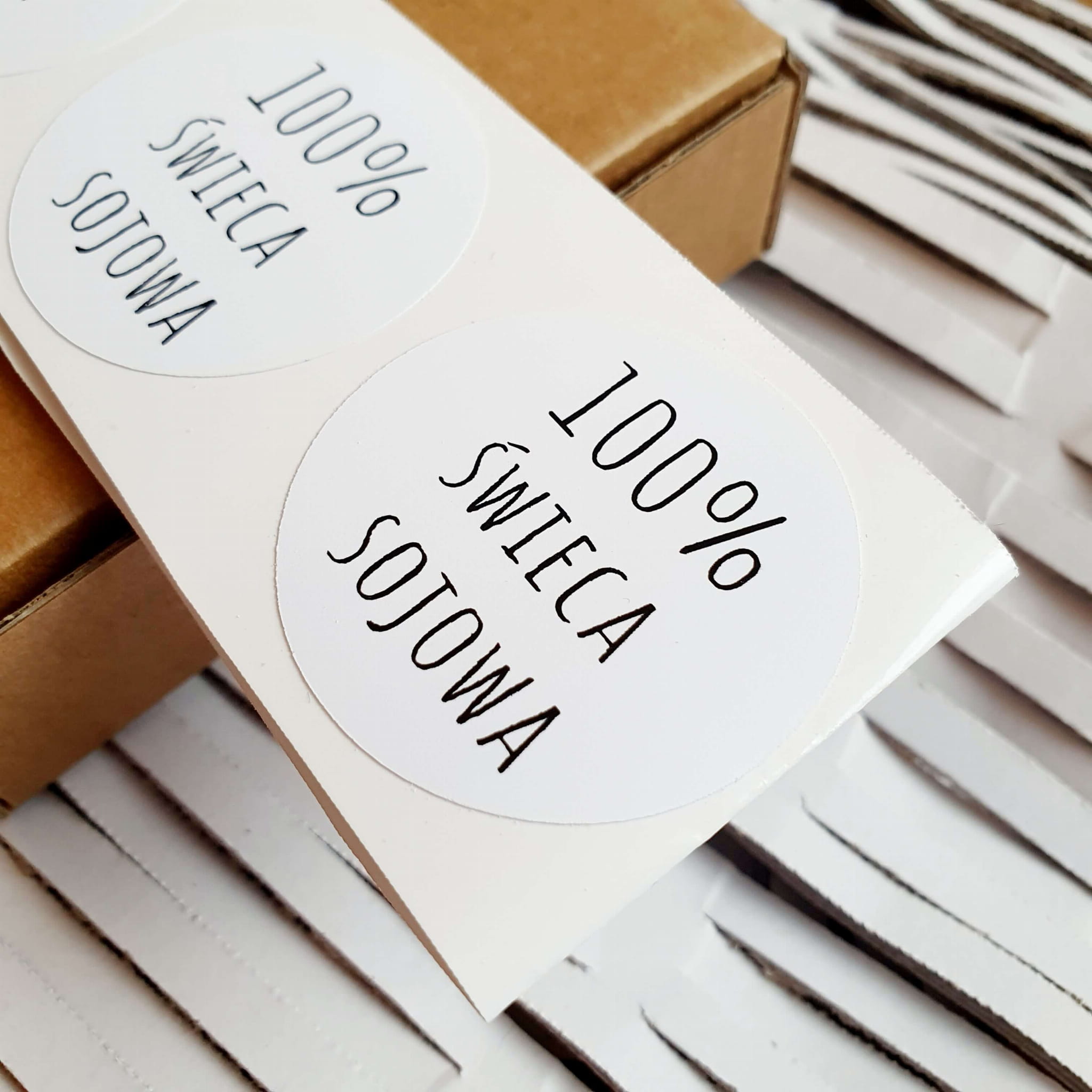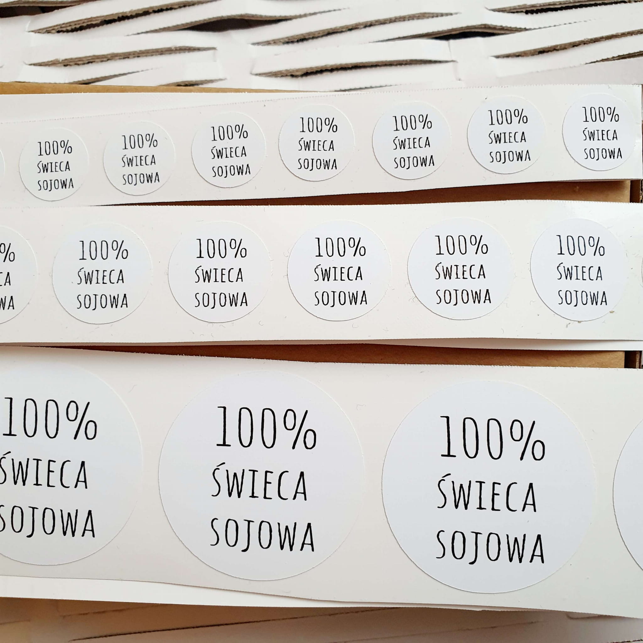 Etykiety na świece sojowe z napisem "100% świeca sojowa".
