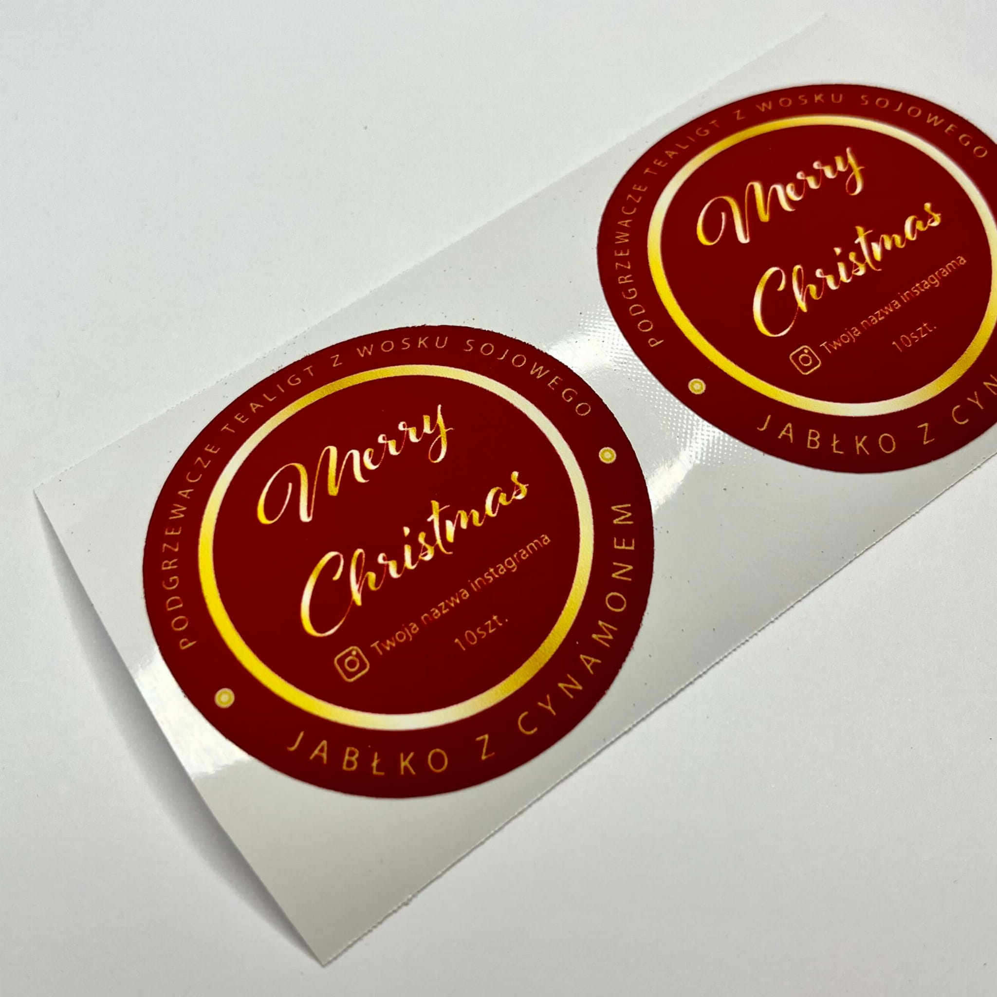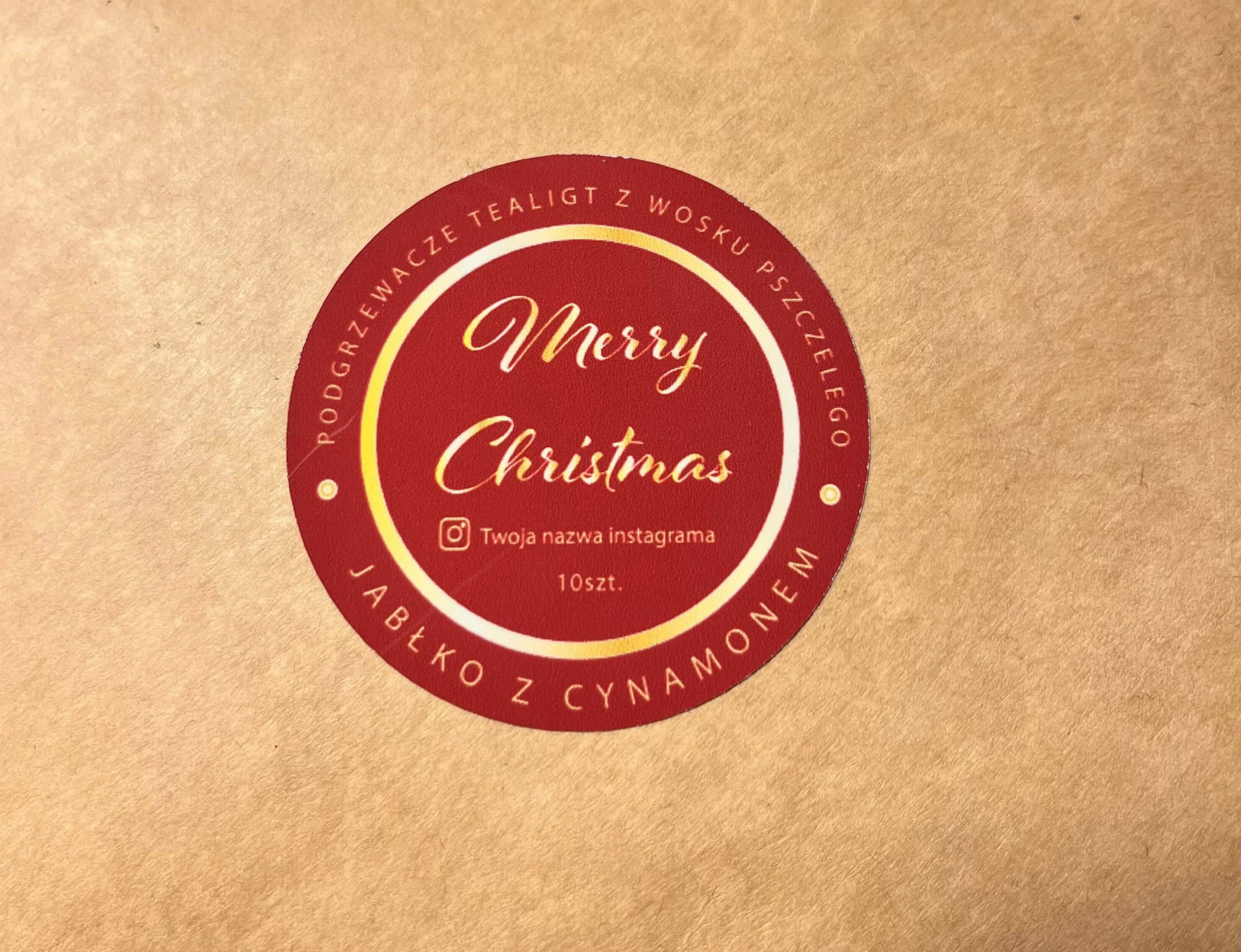 Oferujemy elegancką, świąteczną etykietę stworzoną z myślą o podgrzewaczach tealights z naturalnych wosków: sojowego, pszczelego, rzepakowego i kokosowego. Etykieta o średnicy 5 cm lub 6 cm dostępna jest w projektach z opcją personalizacji, a także w zestawach po 10, 20, 30, 50, 100, 150, 200, 300 oraz 500 sztuk, co pozwala na dopasowanie ilości do potrzeb rzemieślników i producentów rękodzieła.