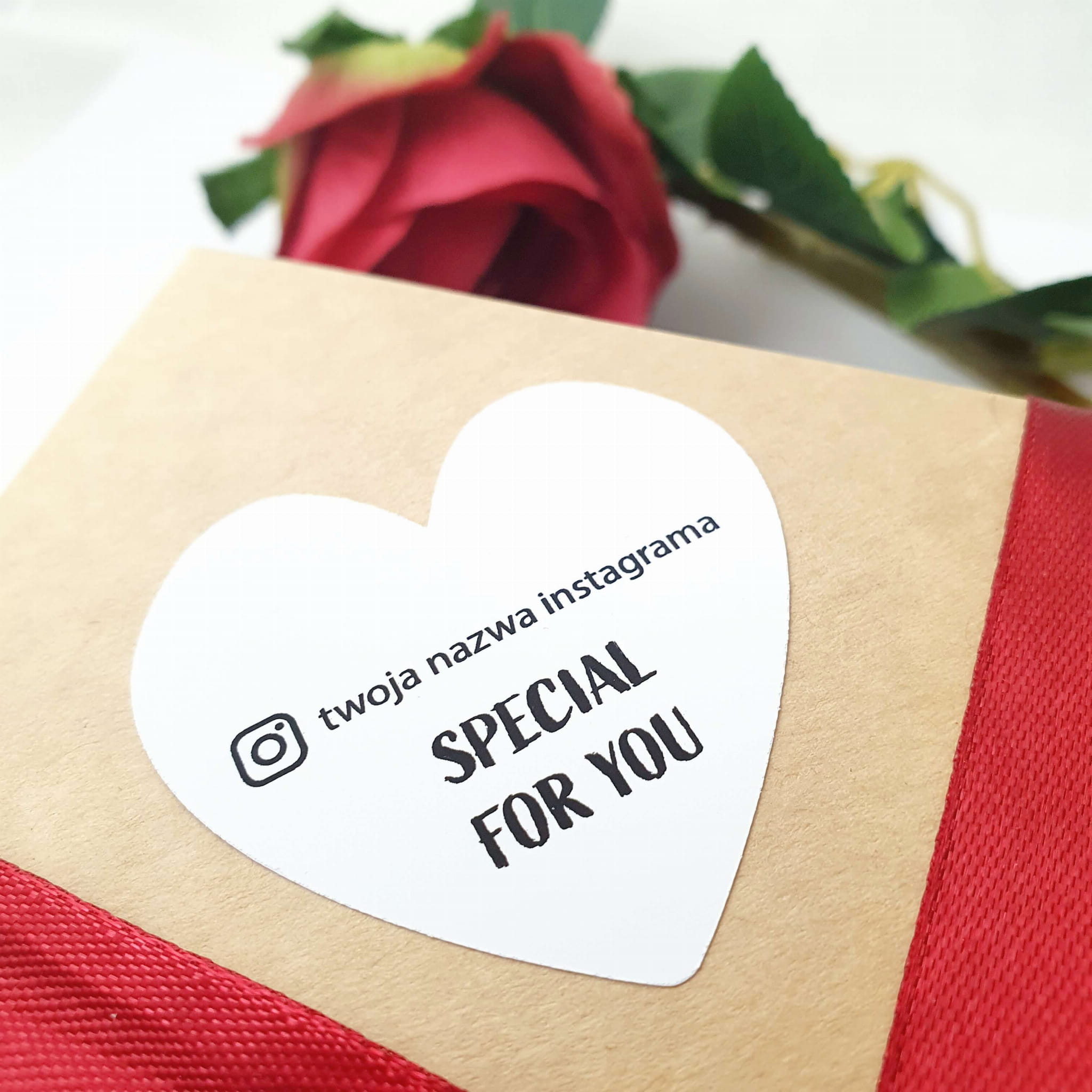 Naklejka do personalizacji motywem serca i napisem SPECIAL FOR YOU, idealnie nada się jako etykieta na prezenty, paczki walentynkowe oraz do pakowania standardowych paczek, produktów.
